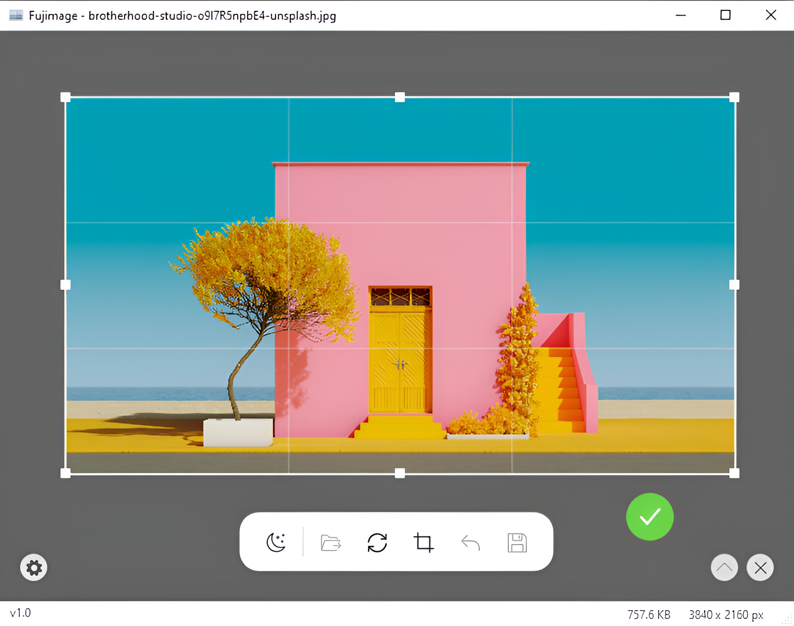 Fujimage es un visor de imágenes ligero desarrollado en Python con PySide6, pensado para ofrecer una visualización rápida, limpia y moderna. Permite abrir múltiples formatos de imagen, navegar de forma fluida, usar arrastrar y soltar, recortar, deshacer cambios y guardar ediciones sin sacrificar simplicidad en la interfaz.
